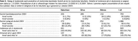 Af Tabel 2 fremgår, at 503/18.081=2,8% af samtlige færdiguddannede læger til stadighed er beskæftiget med ph.d.-arbejde. Denne procentdel er ikke af afgørende betydning for den samlede lægelige arbejdsstyrke. Knap 20% af en årgang erhverver en ph.d.-grad. Dette tal bør ikke være højere, da dette, uden udsigt til yderligere videnskabelige landvindinger, ville medføre et uformelt, om end absurd, krav om ph.d.-uddannelse for optagelse i uddannelsesstilling.
