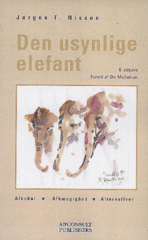 Alkoholproblemer er generelt underbehandlet i Danmark, hvor vi i gennemsnit drikker 9-10 liter ren alkohol om året - spæd som olding, og hvor ca. 10% drikker halvdelen af landets samlede forbrug.Trods udbredelsen er det fortsat tabueret at tale om afhængighed af alkohol. Emnet berøres ofte distancerende og problemfornægtende. Derfor er JF Nissens bog meget velkommen. Forfatteren tør sætte ord på og skrive lige ud om alkoholafhængighed og symptomer samt om problemerne i familien, på arbejdspladsen etc. Han anvender let forståelige metaforer, bl.a. »Den usynlige elefant« om den alkoholafhængige. Elefanten sniger sig ind og vokser sig større, fylder og kræver. Den prøver selv at gemme sig, og omgivelserne prøver at overse den. Den bliver altopslugende, hvis der ikke sættes ind med behandling.Det er let at genkende forløbet, hvis man har arbejdet med alkoholafhængige eller selv har en usynlig elefant i nærheden.JF Nissen formår også at give familien håb om et godt liv uden den livsfarlige elefant ved at vise sin vej ud af afhængigheden. Den går via Minnesota-kuren (12-trinsmodel) med opfølgning via møder i Anonyme Alkoholikere; sigtet er livslang afholdenhed.