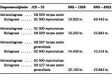 DRG-værdierne i henholdsvis 1998 og 2003kan ses i tabel 1.