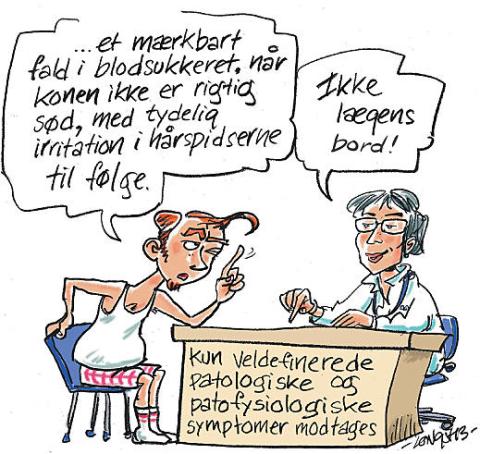 En mand angav at have lavt blodsukker og ubehag i relation hertil og fortalte, at han ti sekunder efter at have spist noget havregryn uden sukker, mærkede en stigning i blodsukkeret og bedring i tilstanden. Det ville være godt, hvis vi turde sige til sådan en patient: »Ved du hvad, det har ikke noget med blodsukkeret at gøre. Har du lyst til at tale om, hvad det ellers kunne være?«