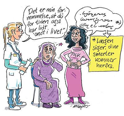 Kontakten med patienter med dårlige sprogkundskaber er så belastende, at det påvirker kommunikationen, hvilket sundhedsprofessionelle derfor ofte forsøger at undgå [1]. De oplever, at etniske patienter er mere tids- og resursekrævende. Sundhedsprofessionelle føler sig stressede, forvirrede eller frustrerede i konsultationer med etniske minoritetspatienter [2]. Patienter med dårlige sprogkundskaber har dårlig forståelse af diagnose og behandling, og de er mindre tilfredse med konsultationen [3]. De har færre kommentarer eller spørgsmål, forlader konsultationen med utilstrækkelig viden [4] og har større risiko for at blive udsat for fejlbehandling [5].