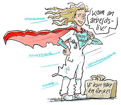 En kollega har fortalt mig, hvordan hun og forvagtslaget fik skrammer, når de om natten blev vækket af hylet, fordi lyset ikke virkede på vagtværelset. Der blev snakket meget om, hvor typisk det var, at ikke engang noget så banalt fungerede i det offentlige sundhedsvæsen. Dog gik der måneder, før en af dem endelig tog sig sammen til at skifte pæren. I 2000 viste en trivselsundersøgelse, at 70% af de yngre læger ikke følte, at de havde nogen indflydelse på deres arbejde. Hvordan kan vi som højtuddannede mennesker, der i privatlivet jonglerer med baby, bolig, bajere og karriere, blive så fortabte, så snart vi træder ind i kitlen, at vi glemmer at skifte vores egen pære? Det er ikke sådan, vi bliver morgendagens ledere og patienternes forkæmpere.
