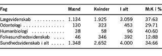 Pr. 8.2.2005 var kønsfordelingen blandt medlemmerne af Lægeforeningen: Se Tabel 1 .