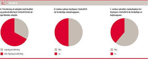 Imidlertid svarede to tredjedele af overlægerne, at arbejdet med kvalitet og patientsikkerhed ikke prioriteres på lige fod med andre kliniske opgaver på afdelingerne. De oplever, at de selv og deres medarbejdere ofte sættes i krydspres mellem presserende arbejdsopgaver. De skal til stadighed prioritere i forhold til tid og resurser. Størstedelen af overlægerne siger endvidere, at den største forhindring i arbejdet med patientsikkerhed er mangel på resurser: tid og personale.