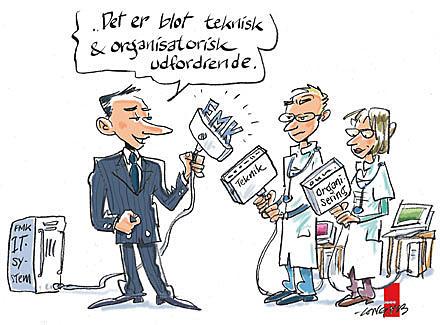 PT’s påstand »Men problemet er, at FMK slet ikke teknisk er klar« mener jeg faktisk ikke er korrekt. At han og mange af hans kolleger har voldsomme tekniske problemer skyldes, som jeg ser det, ikke et teknisk problem i den centrale FMK-løsning og dens forbindelse til de lokale løsninger. Årsagen til, at mange oplever voldsomme tekniske problemer, skal hovedsagelig findes i en række af de lokale systemer (både i primærsektoren og sekundærsektoren). Her er der en række tekniske udfordringer, som skal håndteres.