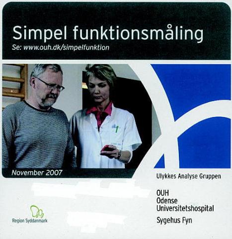 Risikoen for tab af vigtig information ved udskrivelsen af en patient fra den hospitalsbaserede behandling/genoptræning til videre genoptræning i kommunalt regi er overhængende, og modtageren kan ikke altid danne sig et sikkert indtryk af patientens funktionsniveau ved udskrivelsen. Ofte er det svært ud fra genoptræningsplanen klart at vurdere patientens funktionsniveau. Et funktionsniveau som ofte er beskrevet i prosatekster suppleret med en mangfoldighed af test og skalaer, som langtfra altid giver modtageren et klart billede af borgerens funktionsniveau. I et forsøg på at afhjælpe dette og standardisere informationen har Ulykkes Analyse Gruppen, Odense Universitetshospital og Sygehus Fyn, udviklet »Simpel Funktionsmåling« som et bud på en måde, hvor man ved hjælp af simple scoringssystemer kan danne sig et indtryk af det generelle funktionsniveau. Man har klogelig valgt validerede test, som har været anvendt inden for mange forskellige sygdomskategorier, og som kan anvendes af flere faggrupper. Simple funktionsmål består af patientens egen vurdering af livskvalitet (Euroqol EQ-5d), et samlet funktionsmål (Barthel 20) og fire funktionstest. Funktionstestene dækker mobilitet (Timed Up & Go), udholdenhed (Repeated Chair Stand), balance (tandemstand) og kognitiv funktion (Orientated Memory Concentration Test).
