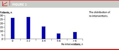 The above mentioned complications led to a total of 245 endoscopic re-interventions with an average of 2.8 per patient. The distribution of re-interventions is shown in Figure 1.