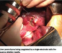 The aim of the present study was to investigate a single electrode RFA needle as an instrument for liver resections with special emphasis on operation time, time of liver ischaemia, intra-operative blood loss and post-operative complications.