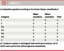 Five patients developed bile fistulas, in all cases after hemi-hepatectomies. There were no reoperations for bleeding and no 30-day mortality in this study (Table 3). According to the Dindo-Clavien classifications, seven patients were in the IIIa category, six of these due to bile leakage (Table 4).