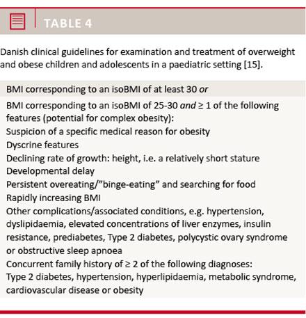 Johansen A, Holm JC, Pearson S et al. Danish clinical guidelines for examination and treatment of overweight and obese children and adolescents in a pediatric setting. Dan Med J 2015;62(5):C5024.