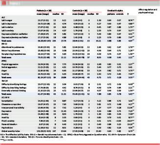 Material and methods: This study comprised a group of women diagnosed with BPD (n = 29) and a comparison group of healthy subjects (n = 29) who reported psychopathology and levels of affective instability, aggression, -impulsivity and alexithymia by self-report measures.