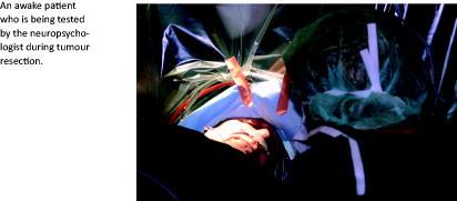 Two large Canadian studies with 200 and 610 patients, respectively, showed a one-month mortality of 0.5-1% and a morbidity, including neurological deficits, of 14.8-16.5% [2, 15]. Conte et al prospectively compared AA in a group of patients needing speech mapping with GA (intubated) in a group undergoing motor mapping. They found a tendency towards more anaesthetic complications in the AA group. On the other hand, fewer epileptic seizures were seen in the AA group. Neuro logical outcome was not registered [11]. The only prospective randomised study comparing awake craniotomy with GA included 53 patients. In the GA group, a surprising tendency was found towards better neurological outcome, shorter operation time and shorter hospital stay, and a statistically significantly shorter operation room time was observed. The steep learning curve for the team involved in awake craniotomy and the lack of mapping were considered possible reasons for this result [20]. Bearing this in mind, there is no other way to test language function besides awake surgery.