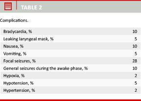 The frequency of acute conversions from the awake phase to GA has been found to range from 0% to 6%. The most common cause of conversion was generalised seizures, but also tight brain, vomiting, agitation and prolonged apnoea have been shown to make GA necessary. There was a tendency towards more conversions to GA in the MAC studies, and towards fewer conversions as the experience of the anaesthetic team improved [3, 8-11, 15].