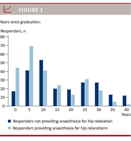 . The respondents who had provided anaesthesia for hip relocation had a median of ten years of experience (range: 1-43 years) and 55% were specialists. Respondents who did not provide anaesthesia for the procedure had a median of 15 years (range: 0-50 years) of experience and 74% were specialists.
