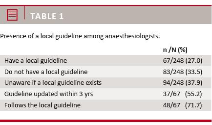 The availability of local guidelines among anaesthesiologists providing anaesthesia for hip relocation is summarised in Table 1