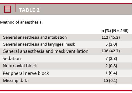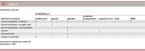 the complications reported by Jensen et al in the Scandinavian guidelines for general anaesthesia for emergency procedures [6]. When performing general anaesthesia with intubation, a higher dose of anaesthetic is given to ensure sufficient anaesthetic depth before intubation is performed. Furthermore, general anaesthesia with intubation was the preferred method of providing anaesthesia among the responders (Table 3), which can explain the rate of cardiovascular and respiratory complication.