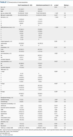 Table 1 shows the baseline characteristics of the study population stratified by anaesthetic technique.