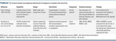 Results of studies addressing withdrawal of analgesics in people with dementia