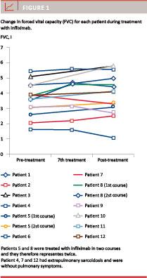 Conclusion: Our results suggest that infliximab is an effective treatment against refractory pulmonary and extrapulmonary sarcoidosis. Other studies have shown similar results.