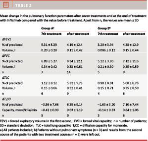 Several case series describe an effect of infliximab on sarcoidosis, but only two randomized trials have so far been performed [2, 4]. Both studies showed an increase in the lung function of patients treated with infliximab compared with the placebo group, but the increase was only significant (p < 0.05) in the study by Baughman et al [4].