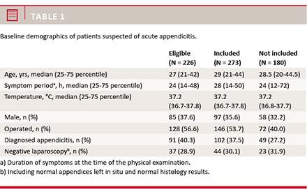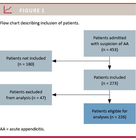 We carried out a prospective observational cohort study including patients (≥ 15 years of age) admitted to the ED at Odense University Hospital, Denmark, with suspected AA in the period from 1 February 2013 to 31 October 2013. Suspected AA was defined as patients with a tentative diagnosis of AA according to the referring general practitioner or attending surgeon.