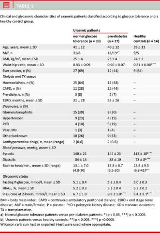The insulin-mediated glucose metabolism is reduced in ureamic patients mainly due to a reduced glucose uptake in the peripheral tissue [7, 19]. This insulin-resistant state contributes to the development of diabetes and pre-diabetes. Our findings of a higher hip-waist ratio and prevalence of pre-diabetes among the uraemic patients than among the control group correlates well with this fact [11].