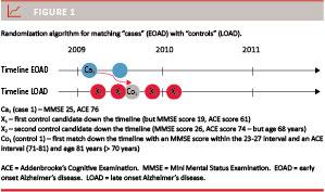Regardless of their age, all patients were diagnosed with AD using the NINCDS-ADRDA criteria for “probable AD” [2]. Patients aged 65 years or less at the time of diagnosis were included in the EOAD group. Patients eligible for the LOAD group were selected pairwise using a strict randomization algorithm: for each EOAD patient, a LOAD “match” was identified as the next patient downstream over the age of 70 years at the time of diagnosis who had an MMSE score within ± 2 points and an ACE score within ± 5 points from the respective EOAD patient (Figure 1). All patients should have been treated with anti-dementia drugs since the time of diagnosis. The diagnosis should have been made more than six months prior to the project follow-up visit.