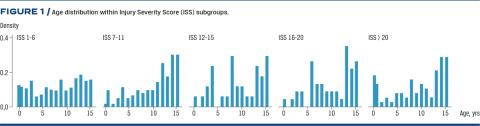 Regarding injury severity, the median ISS was 4 and the IQR 1-9. Injury severity did not differ with respect to sex. Distribution of age within subgroups are shown in Figure 1. By contrast, injury severity tended to increase with age, and children aged ten years or older had significantly higher ISS scores than younger children (Wilcoxon rank-sum test, p = 0.002).