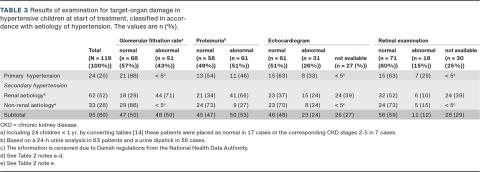 CONCLUSIONS: Examination for target-organ damage was performed less often in patients with hypertension of renal aetiology than in the remaining patients. Examination for target-organ damage is recommended in all hypertensive children to determine whether treatment is indicated to reduce long-term morbidity.