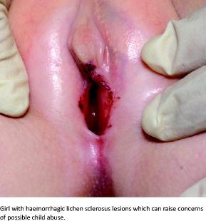 Warrington SA, Lazaro CS. Lichen sclerosus et atrophicus and sexual abuse. Arch Dis Child 1996;75:512-6.