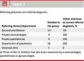Material and methods: Retrospective analysis of hospital records of children (aged 1-18 years) seen at the Department of Dermatology and Allergy Centre in Odense from October 1998 to November 2010 with a definite clinical diagnosis of anogenital LS with/without a confirming biopsy.
