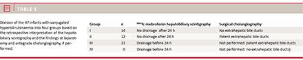 Laparotomy with antegrade cholangiography (if possible) and an intraoperative liver biopsy was then performed in order to confirm or exclude the diagnosis. All the operations were performed by the same surgeon (NK). Other diagnostic results were noted, including results for metabolic, endocrine, infectious and genetic diseases. Blood chemistry results of gamma-glutamyl transpeptidase (GGTP), aspartate aminotransferase (AST), alanine aminotransferase (ALT) and alkaline phosphatase (ALP) were noted. Imaging results from ultrasonography, magnetic resonance cholangiopancreaticography (MRCP) and magnetic resonance imaging were also registered. All HSs were subjected to blinded evaluation by a specialist in paediatric nuclear medicine (LB).