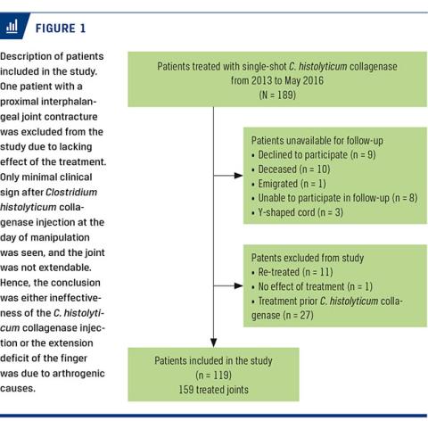 METHODS: All patients treated with C. histolyticum collagenase at the Regional Hospital Horsens from 2013 to 2016