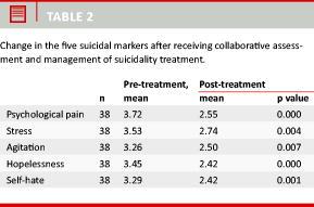 Jobes DA, Wong SA, Conrad AK et al. The collaborative assessment and management of suicidality versus treatment as usual: A retrospective study with suicidal outpatients. Suicide Life Threat Behav 2005;35:483-97.