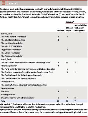In parallel, we also sought information from additional sources (Table 1) and to ensure that our project list would be as complete as possible, we contacted one of the key persons behind the Danish eHealth Observatory, Professor Christian Nøhr, Aalborg University, Denmark, who could not contribute with additional projects.