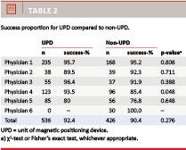 Although the statistics show no evidence of beneficial effects of the UPD, either in success rate or in patient comfort (VAS score), all investigators but one preferred working with it.