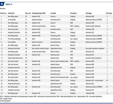 INTRODUCTION: A subgroup of patients with benign colonic neoplasia is unsuitable for standard endoscopic treatment modalities. These patients may benefit from a combined endoscopic and laparoscopic surgical (CELS) approach.