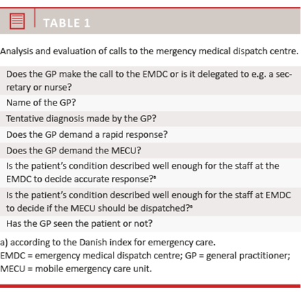 We conducted a retrospective study based on evaluation of calls where GPs requested a rapid response ambulance. Voice files were extracted from the database containing all incoming calls to the EMDC in the Region of Southern Denmark during three representative months of 2014; January, July and December.