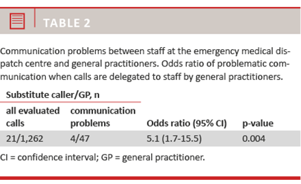 CONCLUSIONS: Problematic communication is rare, occurring in less than 2% of the calls. Problems are more frequent when the GP delegates the call. Furthermore, we established that the communicative problems were more likely to be initiated by the staff at the EMDC than by the GP. In addition, we found that there was insufficient information to assess if the MECU should be dispatched in nearly 20% of all calls.