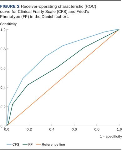 CONCLUSION. A significant association existed between frailty and 90-day mortality in the Danish cohort. However, the CFS is a better predictor of 90-day mortality the FP. Even so, the CFS still has a lack of sensitivity and specificity.