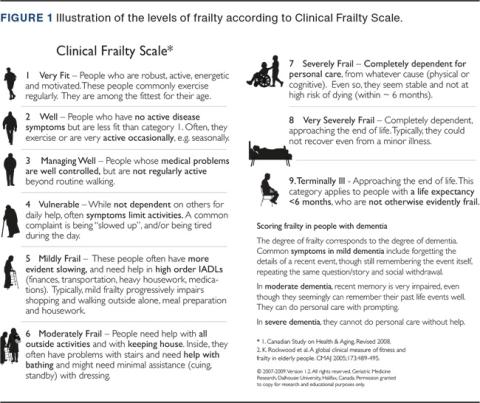 Rockwood K, Song X, MacKnight C et al. A global clinical measure of fitness and frailty in elderly people. CMAJ. 2005;173(5):489-95.