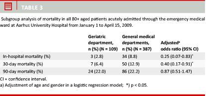 Conclusion: An acutely ill elderly patient seems to benefit from CGA in a geriatric department. Short-term mortality is reduced despite higher age and comorbidity and the length of stay or readmission rate were not increased.