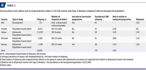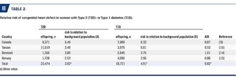 The aim of this review was to estimate the prevalence of CHD in offspring of women with Type 2 diabetes compared with offspring of women with Type 1 diabetes and offspring of the background population.