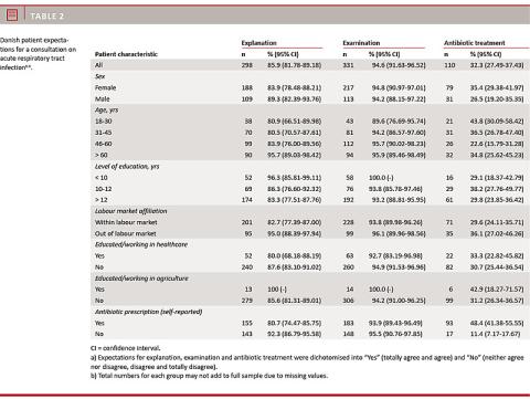 The majority of Danish patients consulting the GP with symptoms of an RTI primarily expected an examination (94.6%) as well as an explanation of their symptoms (85.9%). About 32% of the patients expected antibiotic treatment (Table 2).