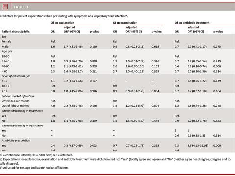 Odds ratios (OR) for the associations between patient expectations, patient characteristics and antibiotic prescriptions are shown in Table 3.