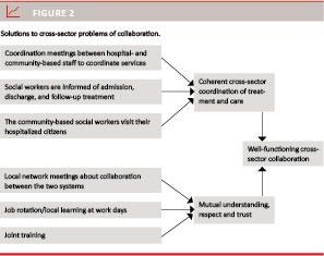 In this paper, we inquire into what those cross-sector problems of collaboration in mental health care are about and ask how they may be resolved from the perspective of staff and management in both the community setting and the hospital setting. In contrast to previous studies, our results suggest that the major obstacle to cross-sector collaboration is ineffective coordination and lacking interaction between systems rather than different approaches to service users and an unclear division of labour. Our focus on potential resolutions to collaborative problems is generated through a change theory perspective [9], which analyses specific collaborative problems from a problem-solving perspective and which generates concrete, practical and viable solutions.