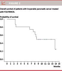 Introduction: Worldwide, pancreatic cancer (PC) ranks 13th in cancer incidence, but 8th as a cause of cancer death. For more than a decade, the reference regimen for palliative treatment of PC has been gemcitabine. In 2011, a randomised trial published by the PRODRIGE Intergroup showed an increase in median overall survival from 6.8 to 11.1 months in patients treated with FOLFIRINOX as compared with gemcitabine.