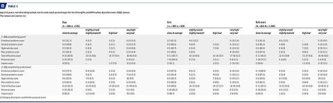Van Roy B, Grøholt B, Heyerdahl S et al. Self-reported strengths and difficulties in a large Norwegian population 10-19 years: age and gender specific results of the extended SDQ-questionnaire. Eur Child Adolesc Psychiatry 2006;15:189-98.