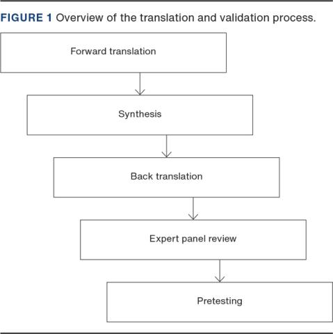 Methods. The translation process consists of five stages: forward translation, synthesis, back translation, expert panel review and pretesting. Qualitative validation included interview with target audience representatives, testing of face-validity and evaluation by lay persons.