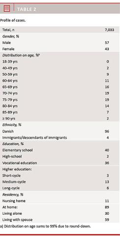 The majority (89%) were living at home with only 30% of these living alone. In total, 11% of the IPD patients were nursing home residents, although this only applies to 2% of those under 65 years of age. In the IPD population older than 65 years of age, 13% were nursing home residents. This number was 25% for patients above 80 years. The IPD patients have a high degree of co-morbidity, and 71% of the patients had a contact in 2009- 2010 in the NHR distinct from DG20.9 concerning hospitalisation or treatment in an outpatient clinic.